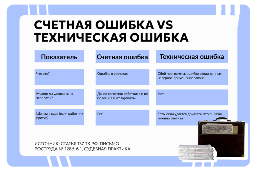 - Роструд. «Переплата из-за технической ошибки». 2022