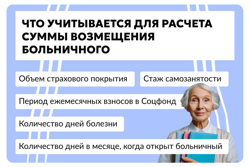 Оформить больничный можно будет только после стабильных отчислений в Соцфонд в течение полугода. И здесь тоже появляется нюанс: если вы платили за больничный меньше года, вам возместят только 70% выбранной страховой суммы. Для 100% нужно делать взносы год и дольше. Математика непростая, поэтому покажем на примере, как могут выглядеть эти расчеты. Допустим, вы выбрали страховое покрытие в 50 000 рублей.