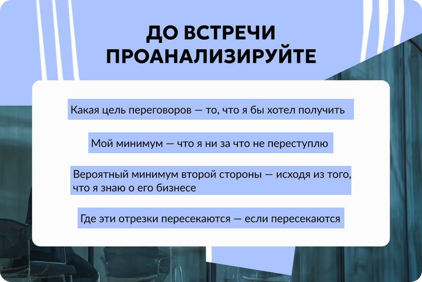Такая работа до встречи существенно снижает риск тупиковых ситуаций и «многоходовки» и помогает быстрее находить реалистичные варианты договоренностей.