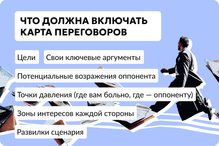 Карту можно вести в сервисе онлайн-досок или просто в документах. Суть не в инструменте, а в подходе: разложить переговоры до того, как они начались.