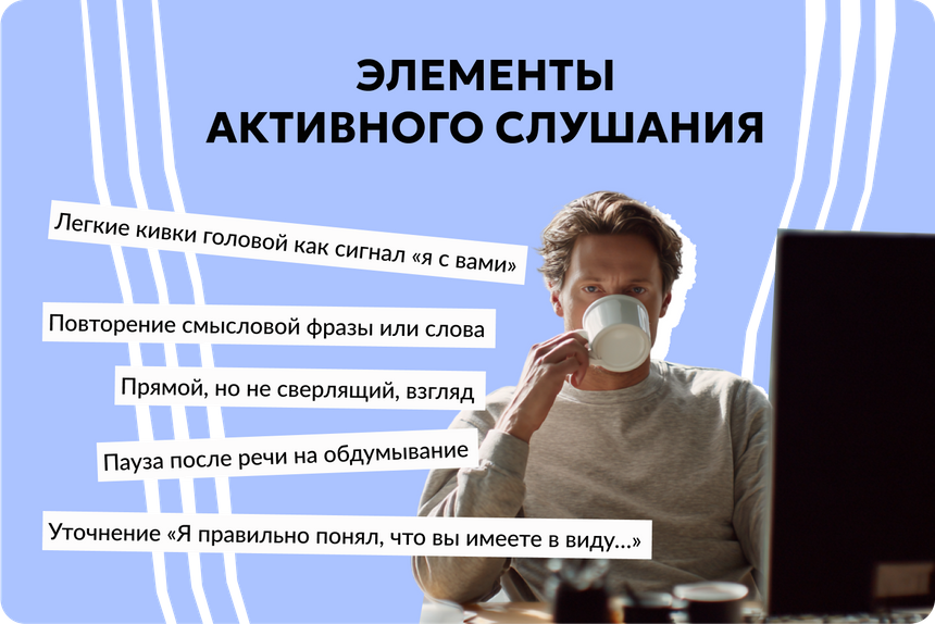 Подробнее о технике активного слушания и о том, как вести себя на деловых переговорах, рассказали в отдельном материале.