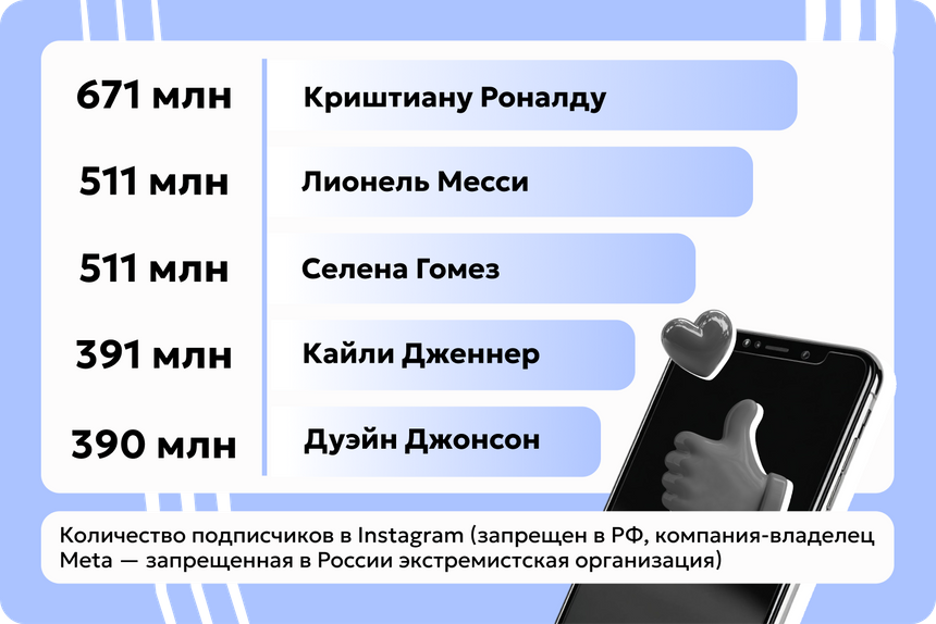 Больше, чем у футболиста, подписчиков в Instagram* (*принадлежит компании Meta, признанной экстремистской организацией и запрещенной в РФ) только у аккаунта самого приложения.