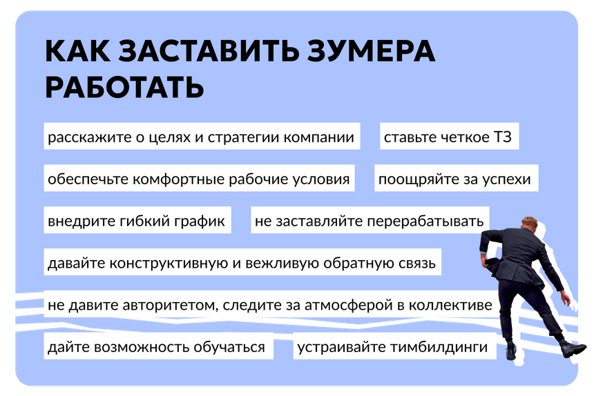 Также откажитесь от дресс-кода, если это возможно. Пусть зумер ходит на работу, в чем хочет, — в конце концов важен результат, а не то, как одет работник.