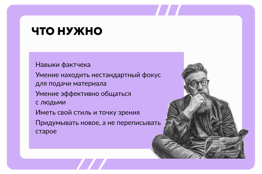 ИИ работает с уже существующей информацией, но не умеет создавать новую. Он не может поехать на место происшествия, взять интервью у очевидца или провести сложное расследование.
