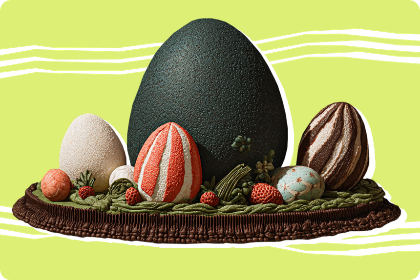 Сейчас в доступе десятки, если не сотни, разных красителей для яиц и декора: и матовые, и глянцевые, и блестящие. Огромное количество специализированных материалов: блесток, пищевых глиттеров. Точно можно что-то выбрать.