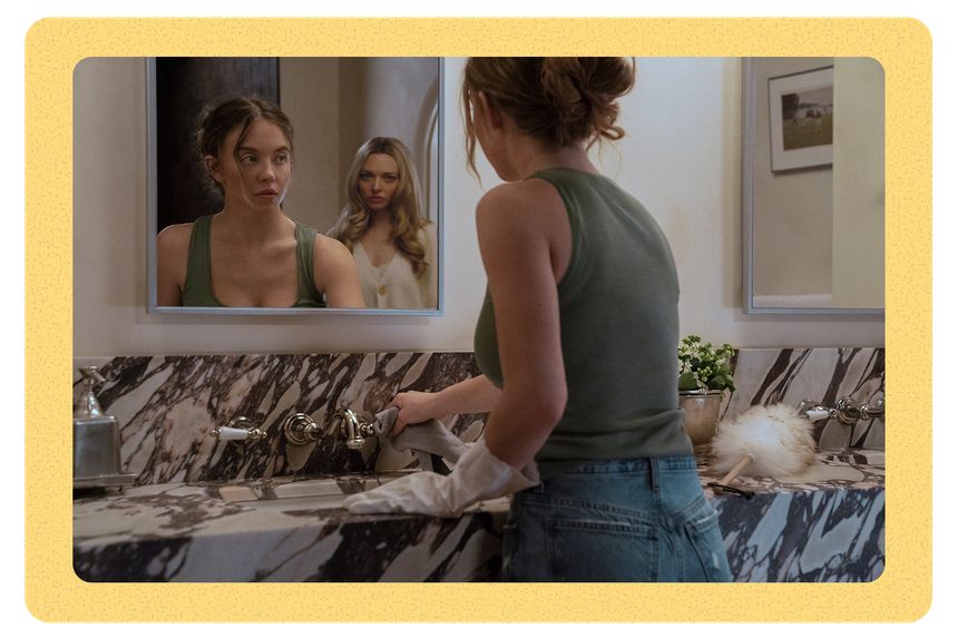 Сюжет. Две шикарные молодые блондинки, один роскошный особняк и неизвестное количество кровавых тайн за его дверьми — такова основа сюжета. Горничную играет звезда «Эйфории» Сидни Суини, прославившаяся на весь мир не только актерской игрой, но и роскошным бюстом. На премьере фильма Пола Фига в США девушку даже обругали за слишком откровенные наряды, сильно обнажавшие эти достоинства.