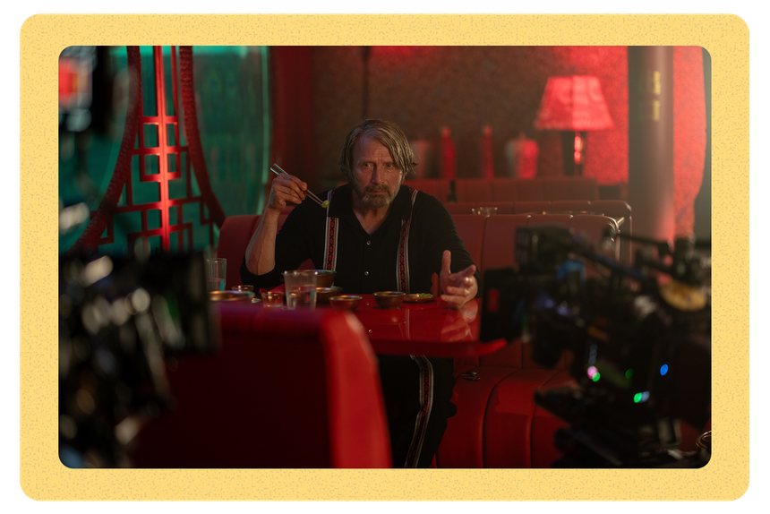 Роль киллера исполнил Мадс Миккельсен. В этом фэнтези зрителей ждет множество забавных отсылок к киношедеврам прошлого. Например, герой Миккельсена сражается на мечах в знаменитом желтом костюме Умы Турман из «Убить Билла», а затем отправляется в кибербудущее, словно герой из «Бегущего по лезвию».