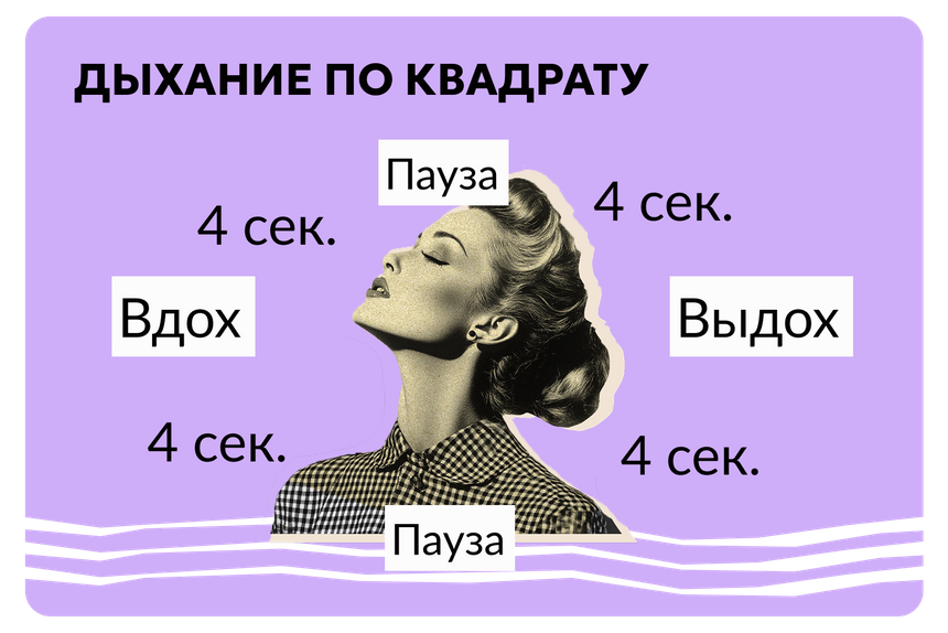 - Опять задержите дыхание на четыре счета и повторите «квадрат» несколько раз.