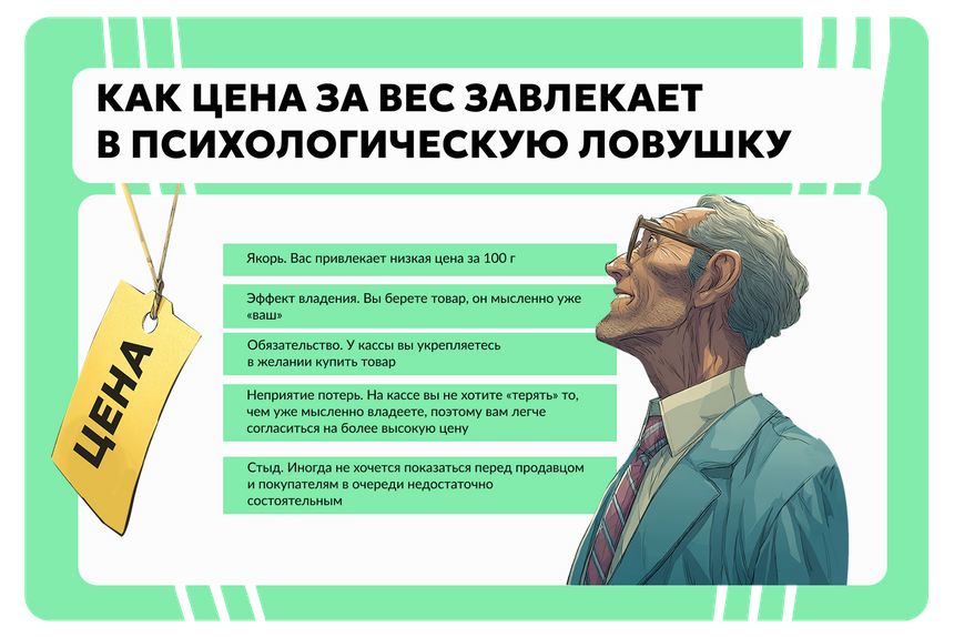 В магазинах есть товары, в ценниках на которые стоимость указана, например, за 100 г. При этом упаковка продукта может весить и стоить вчетверо больше.