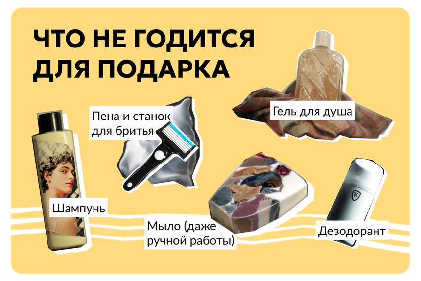 Всевозможные шампуни, гели для душа, пены для бритья, дезодоранты и все, от чего ломятся полки магазинов в преддверии 23 Февраля, тоже не самый лучший презент. И вот почему.
