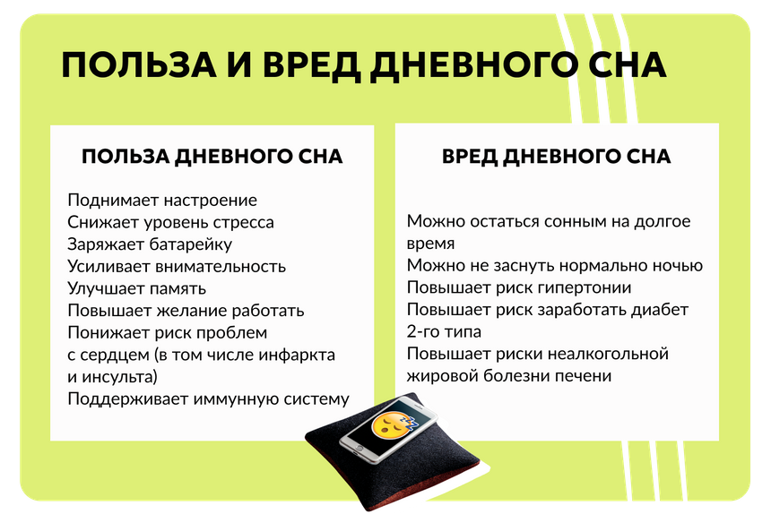 Так что, если днем хочется отдохнуть из-за плохого ночного сна или слишком напряженной работы, можно не отказывать себе в этом удовольствии.
