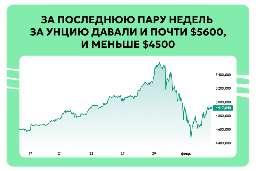 Впрочем, и настоящее золото на этой неделе заставило вспомнить про валидол. После исторического рекорда почти в $5600 цена рухнула сначала на 9% за день, а потом падала еще на 10%.