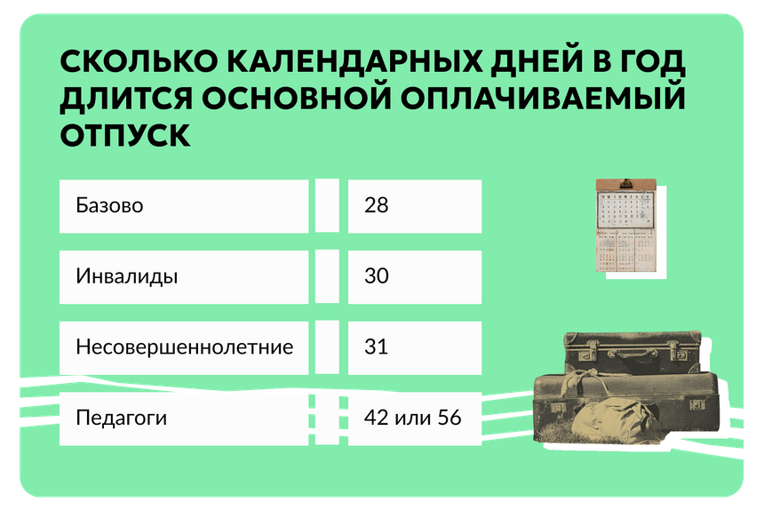 Сколько длится основной оплачиваемый отпуск?