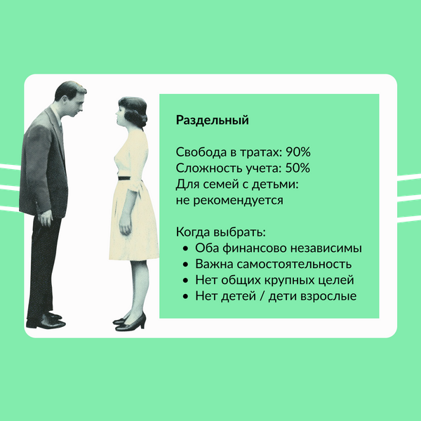 - Может создавать ощущение неравенства, если личные бюджеты супругов сильно различаются.