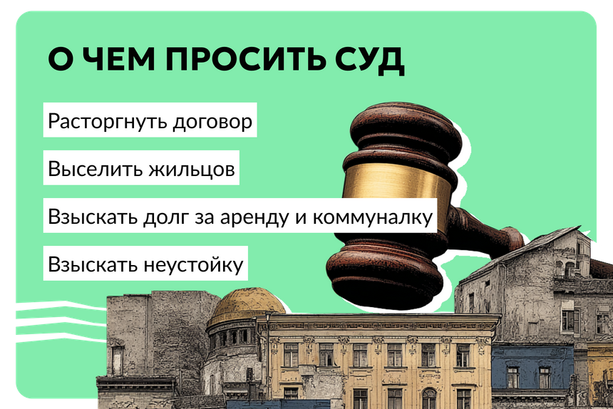 Неустойку за нарушение срока освобождения квартиры. Отдельный пункт, отдельная сумма. Договор закончился, а жилец не съехал — начинает капать штраф.