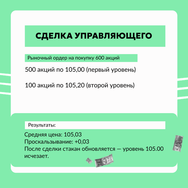 Представьте: вы хотите купить 200 акций по 10 рублей за штуку. Но готовых продать за столько в данный момент нет. Тогда система начинает искать следующие доступные ценовые уровни, где есть продавцы. Например, за 11 рублей. В итоге часть ваших акций будет куплена по 10 рублей, а часть — по 11 рублей. Это и есть проскальзывание — разница между ожидаемой и фактической ценой исполнения.