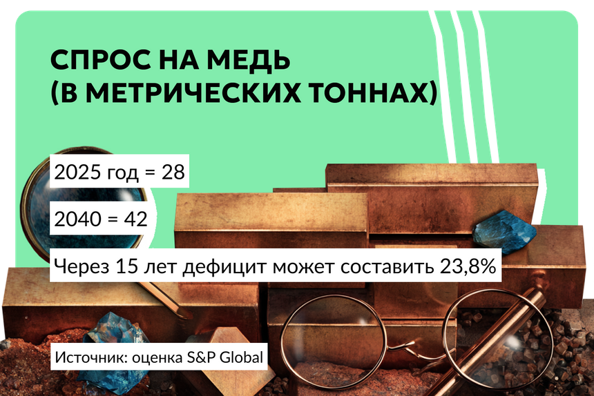 Аналитик «Альфа-капитала» Алина Попцова приводит оценку S&P Global: к 2040 году спрос на медь будет превышать предложение почти на четверть.
