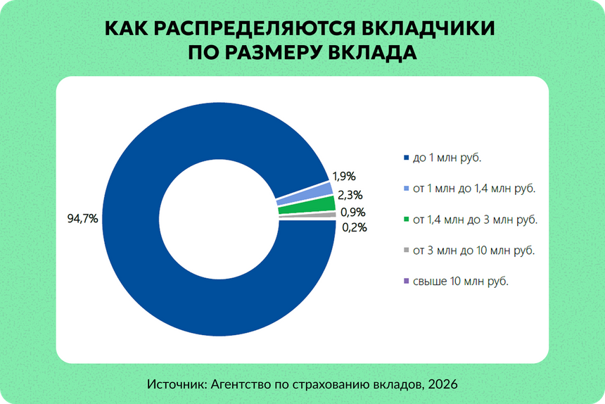 Основную часть из прироста почти в 10 трлн рублей в 2026 году получили люди с капиталом свыше 1 млн рублей. А таких — менее 5%.