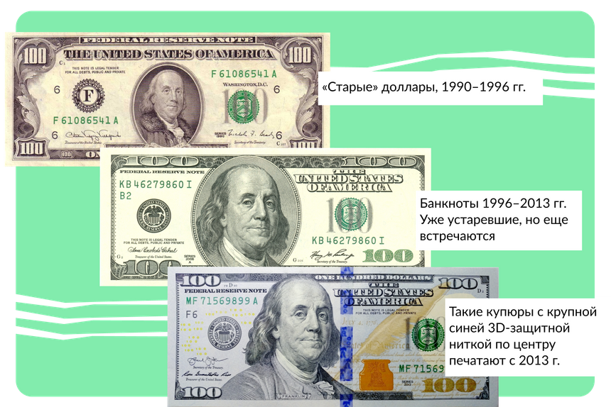 Банкноты выпуска до 1996 года известны как «зеленые». Именно их называют «старыми».