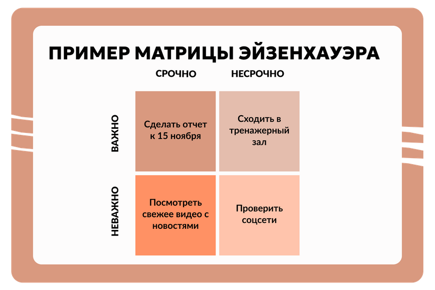 Понять, в каком порядке делать дела, помогает матрица Эйзенхауэра.