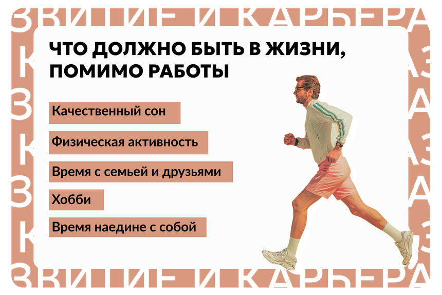 Практики тайм-менеджмента рекомендуют включать в расписание не только работу, но и осознанный отдых: физическую активность, социальные контакты, хобби. В частности, это рекомендует основоположник российской школы тайм-менеджмента Глеб Архангельский в своей книге «Как успевать жить и работать».