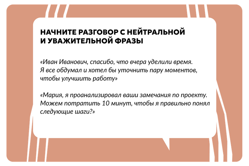 Чтобы критика стала точкой роста, вам нужно понять две вещи: что именно было не так и как это должно выглядеть в идеале. Не бойтесь уточнять — это признак не глупости, а вовлеченности.