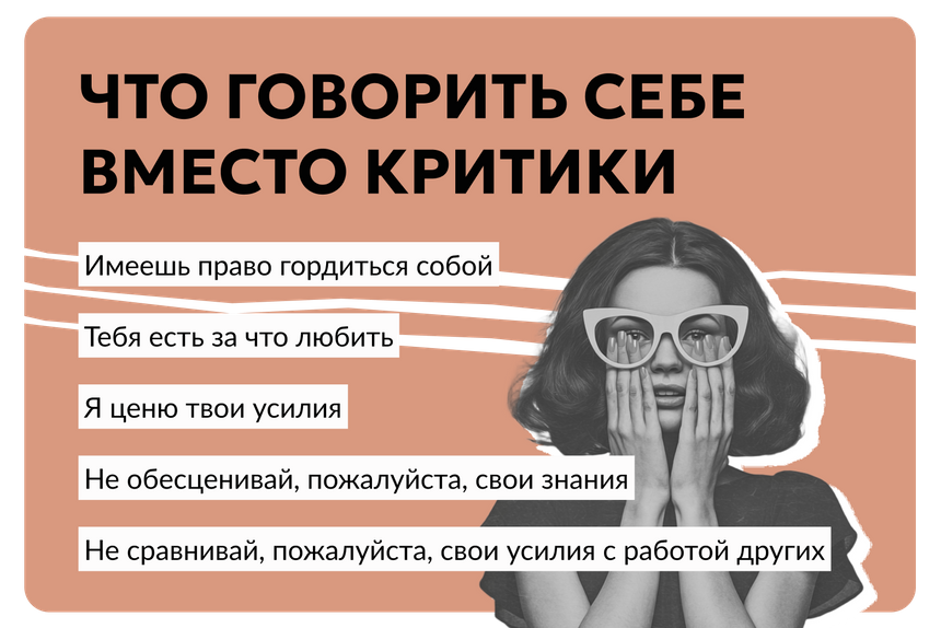 Подобное отношение к себе, которое порой граничит с требованиями невозможного здесь и сейчас, только ухудшают ситуацию. Это не делает вашу работу и общее настроение лучше.